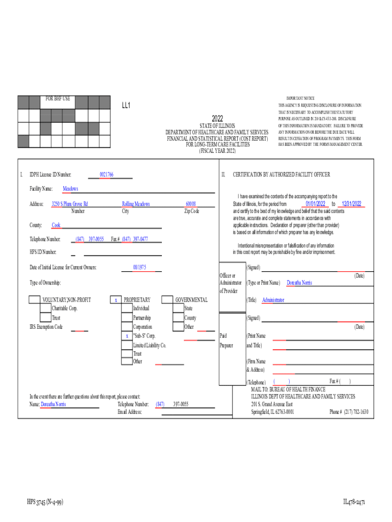Get the free Financial and Statistical Report Cost Report for Long-term Care Facilities - hfs ill...