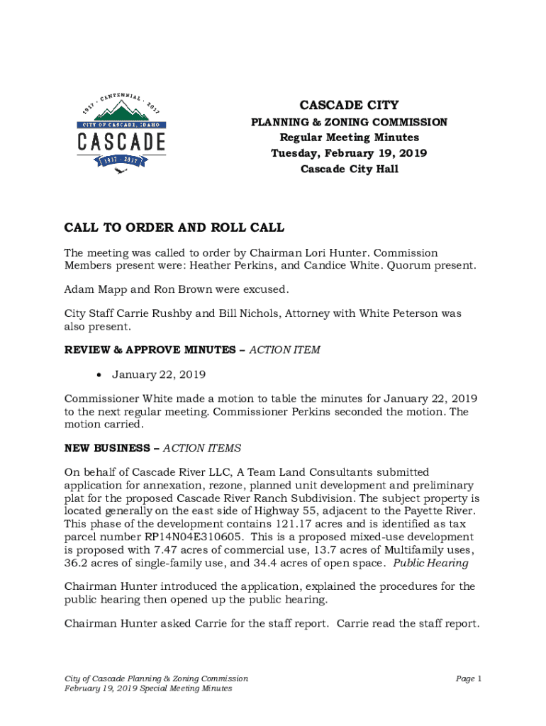 Get the free Cascade City Planning & Zoning Commission Meeting Minutes