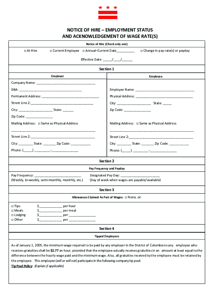 Get the free Notice of Hire Employment Status and Acknowledgement of Wage Rate(s)