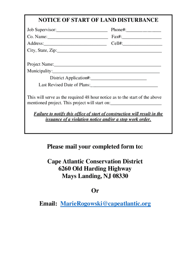 Get the free Notice of Start of Land Disturbance