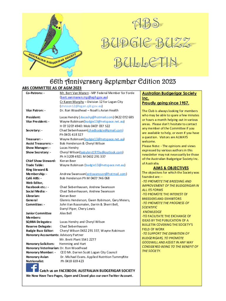 66th Anniversary September Edition 2023ABS COMMITTEE AS OF AGM 2023 CoPatrons: Vice Patron: President: Vice President: Secretary: Treasurer: Assist Treasurers: Show Manager: Show Secretary: Chief