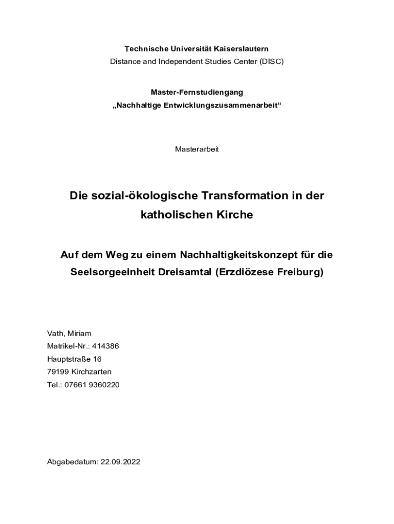 Technische Universitt Kaiserslautern Distance and Independent Studies Center (DISC)MasterFernstudiengang Nachhaltige EntwicklungszusammenarbeitMasterarbeitDie sozialkologische Transformation in der
