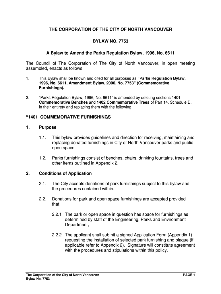 THE CORPORATION OF THE CITY OF NORTH VANCOUVER BYLAW NO. 7753 A Bylaw to Amend the Parks Regulation Bylaw, 1996, No. 6611 The Council of The Corporation of The City of North Vancouver, in open meeting