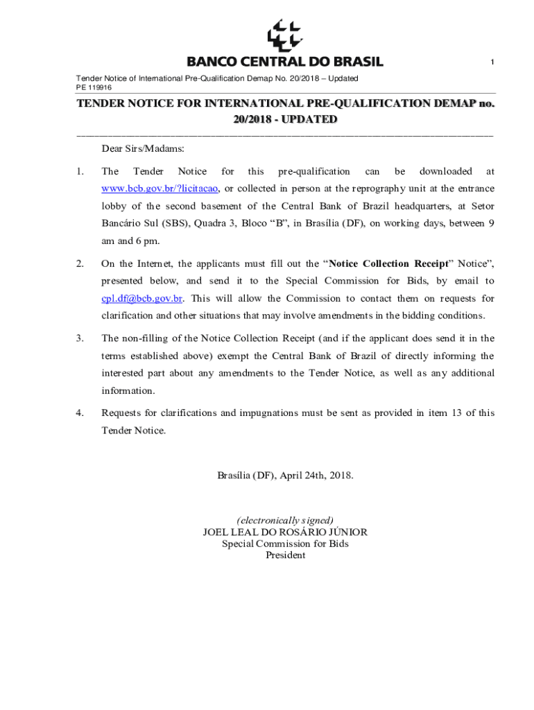 Get the free Tender Notice of International Pre-qualification Demap No. 20/2018 – Updated
