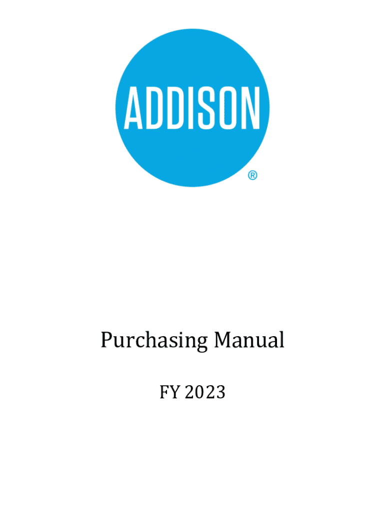 This Purchasing Manual outlines the policies and procedures for purchasing goods and services by the Town of Addison. It includes guidelines for procurement, ethical standards, code of conduct, handling of purchases, change orders, and various forms of purchasing methods, as well as the responsibilities of city employees in the procurement process.