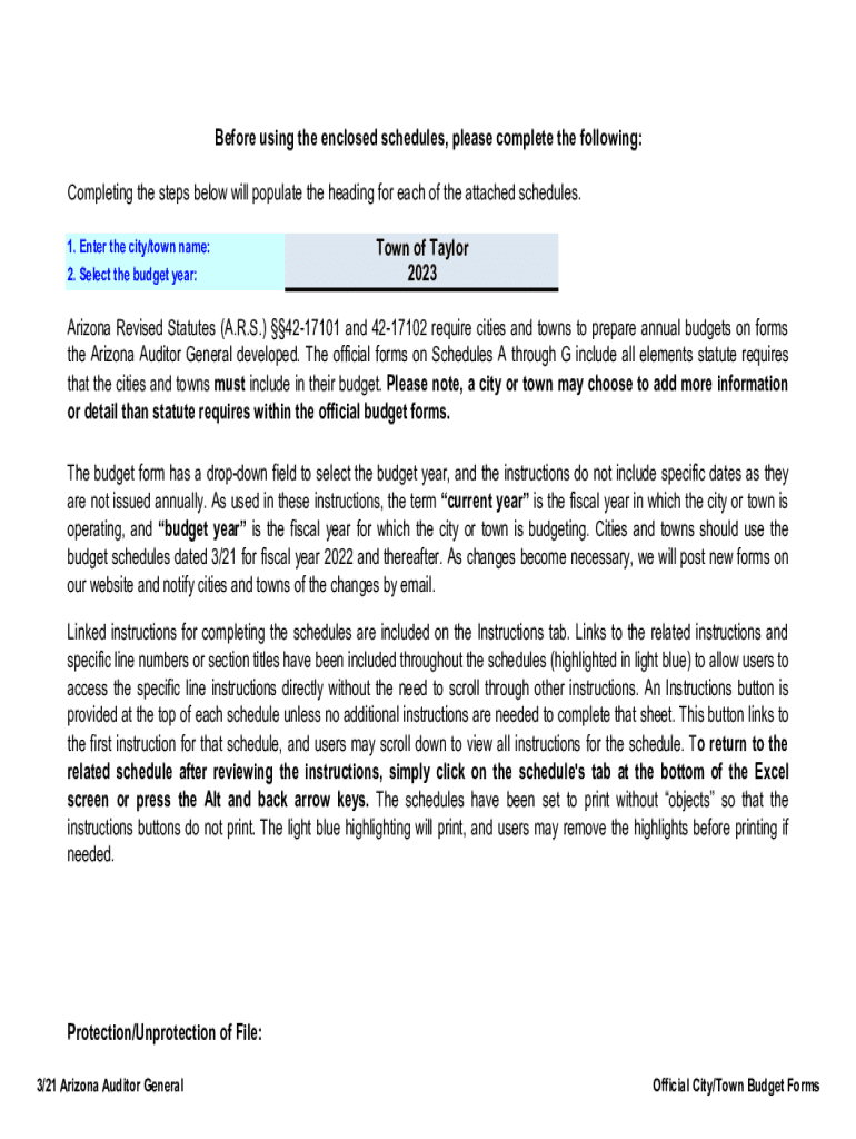 Before using the enclosed schedules, please complete the following: Completing the steps below will populate the heading for each of the attached schedules. 1. Enter the city/town name: 2. Select