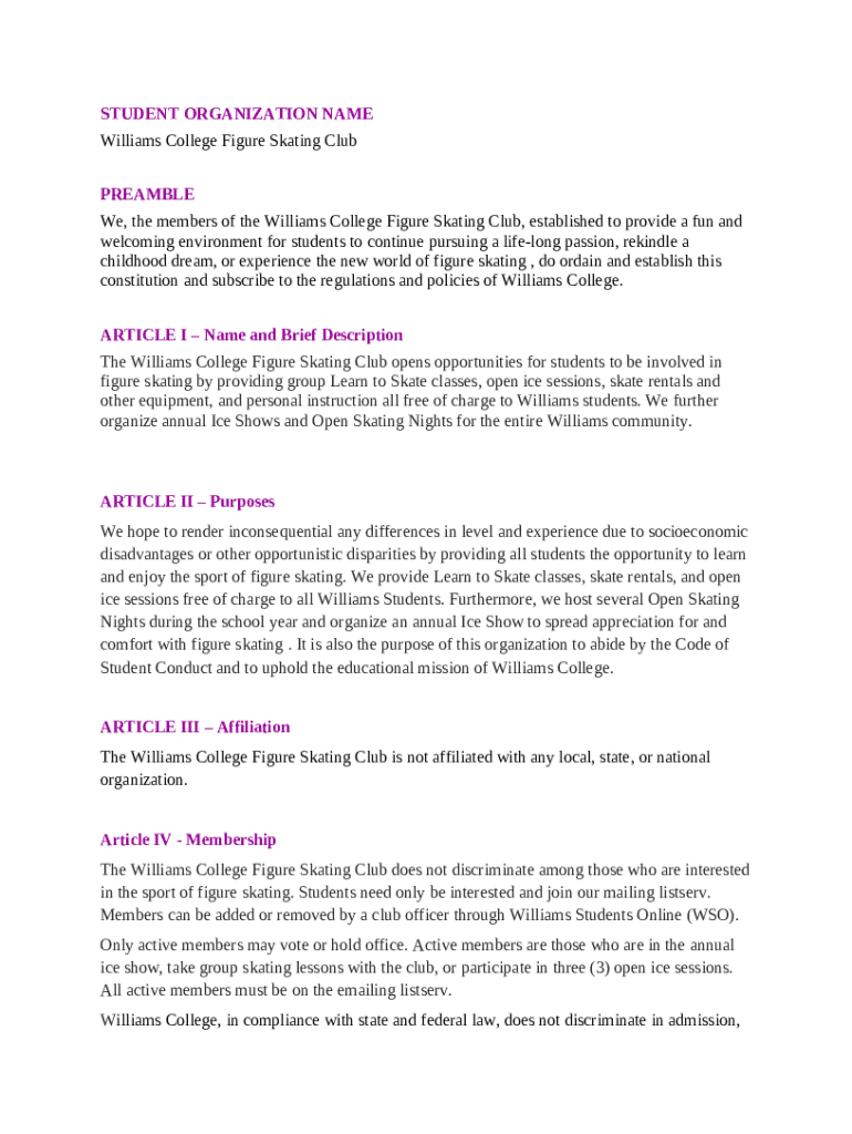 Template Williams College Figure Skating Club Constitution instructions