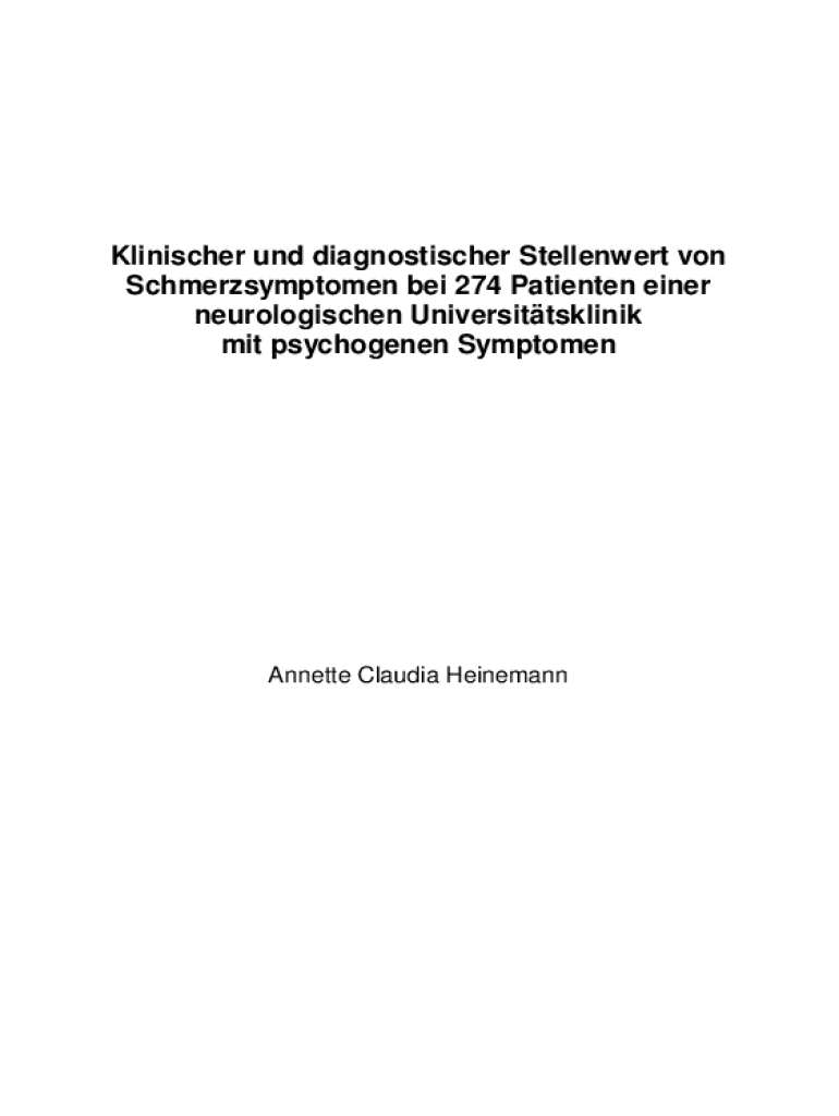 Klinischer und diagnostischer Stellenwert von Schmerzsymptomen bei 274 Patienten einer neurologischen Universittsklinik mit psychogenen SymptomenAnnette Claudia HeinemannKlinischer und diagnostischer