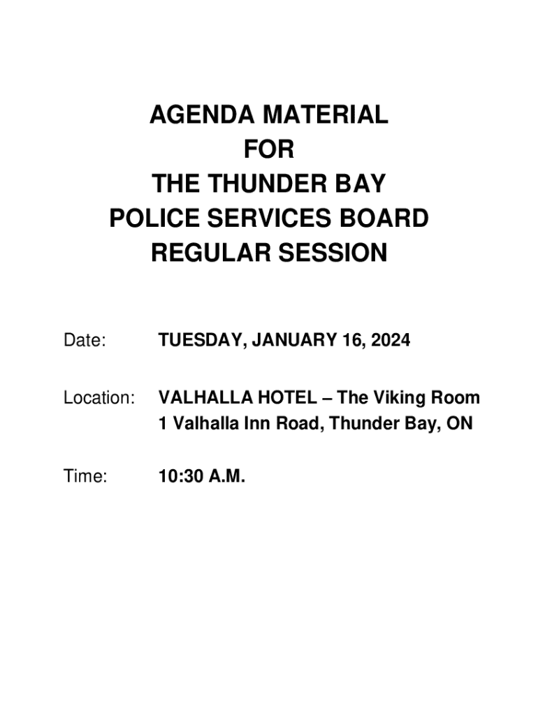 Get the free Thunder Bay Police Services Board Regular Session Agenda