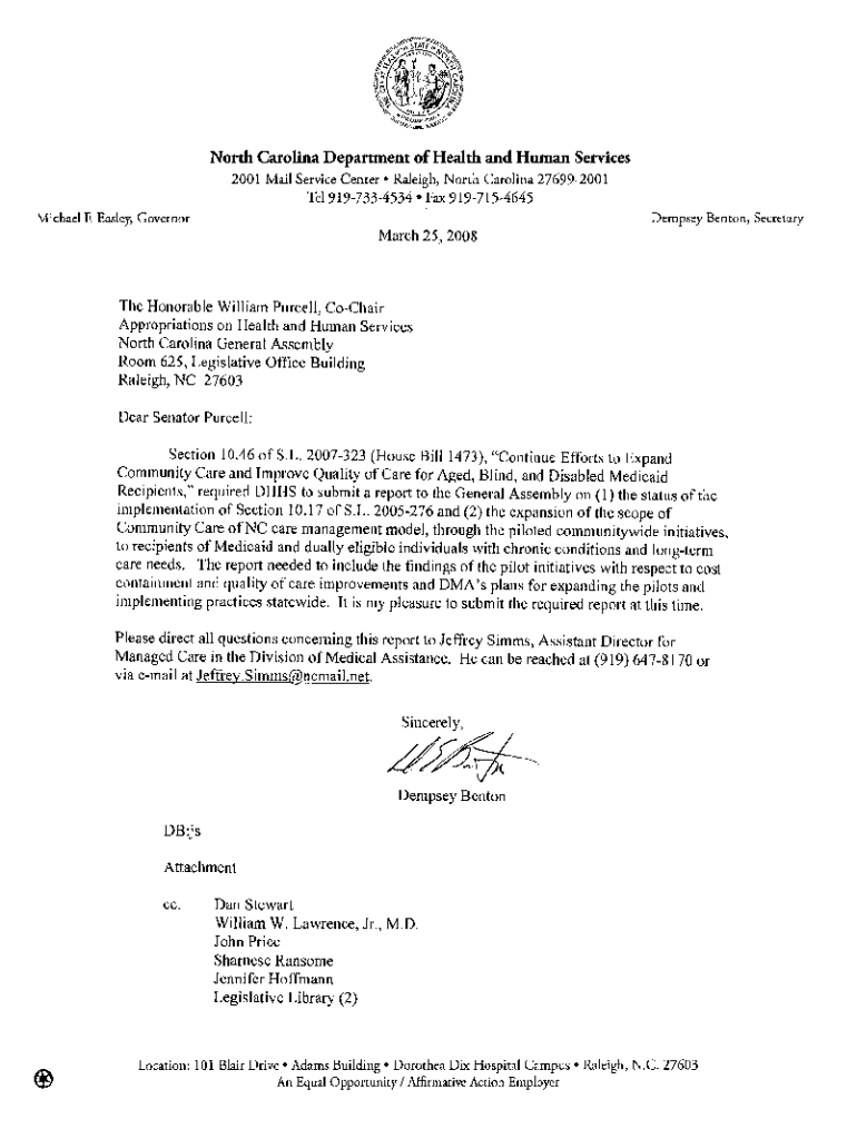 This report outlines the efforts of the North Carolina Department of Health and Human Services to expand community care and improve the quality of care for aged, blind, and disabled Medicaid recipients, including an evaluation of pilot initiatives focused on cost containment and quality improvements. It includes the progress of community care networks in managing high-risk Medicaid populations, as well as chronic care programs designed for conditions such as heart failure, diabetes, and...
