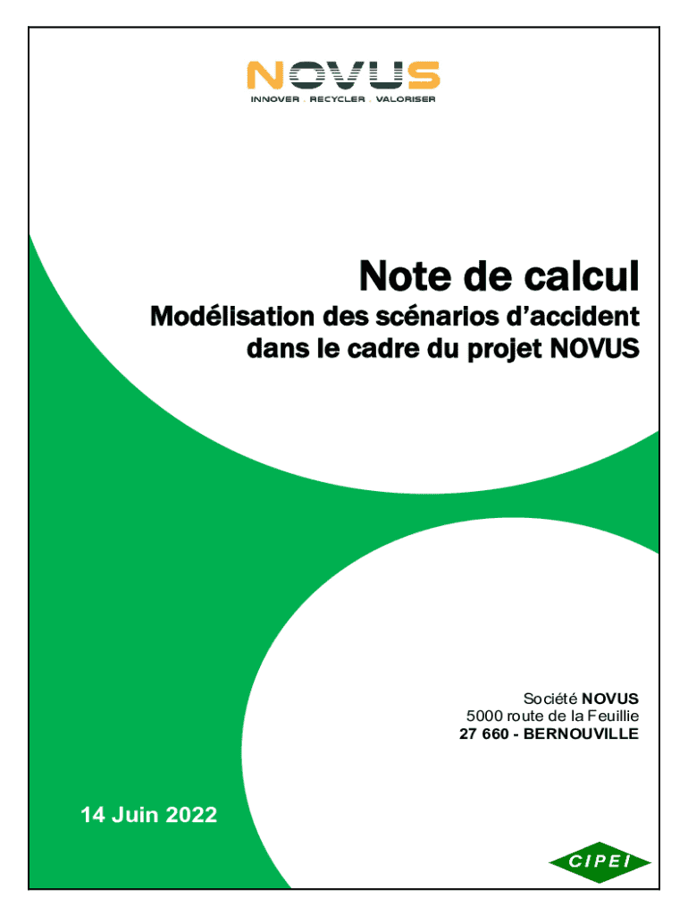 Note de calcul Modlisation des scnarios daccident dans le cadre du projet NOVUSSocit NOVUS 5000 route de la Feuillie 27 660 BERNOUVILLE14 Juin 2022 scnario_novus(bernouville)(v4.022client)NOTE DE