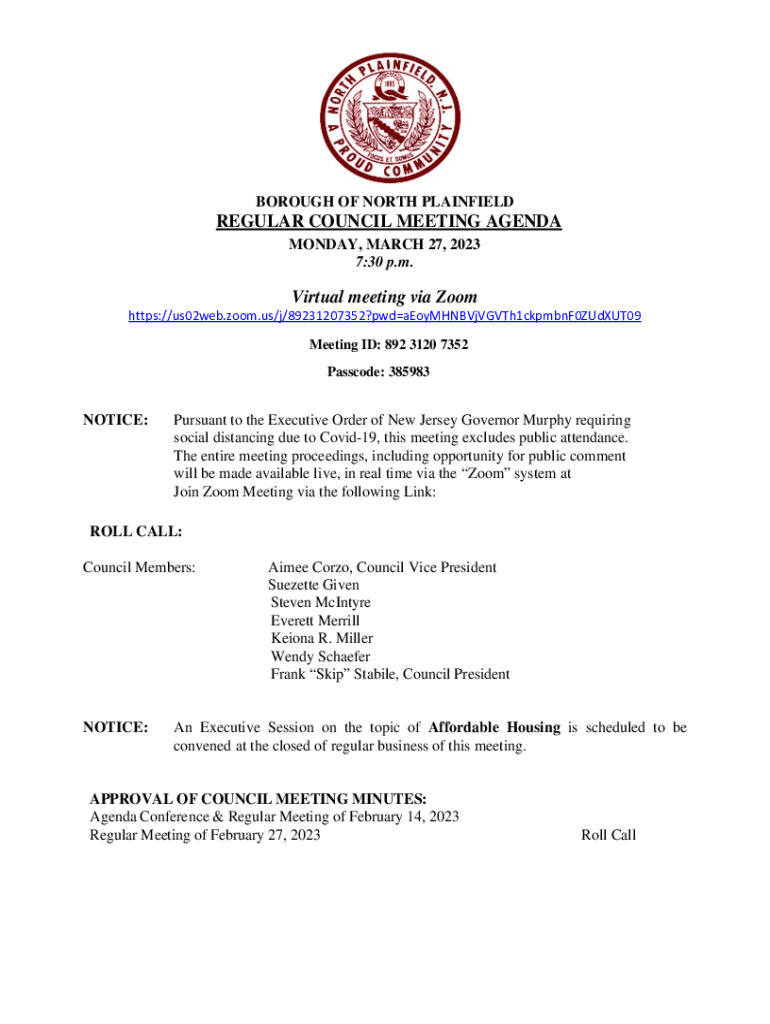 Get the free North Plainfield Regular Council Meeting Agenda