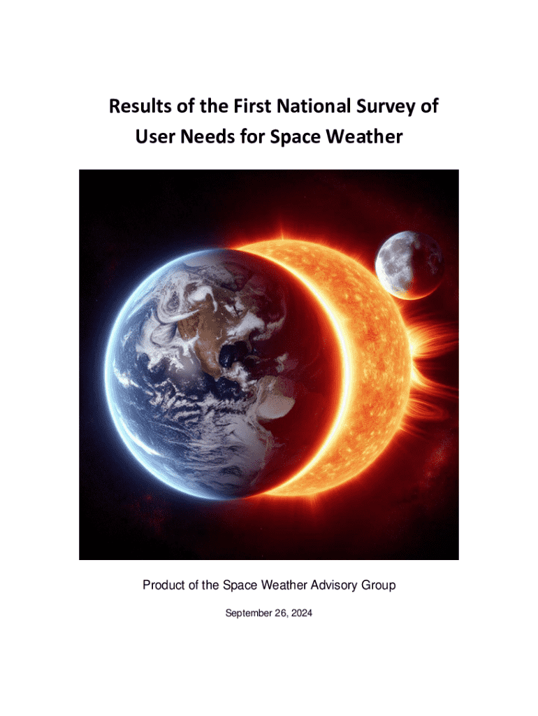 This document presents the findings and recommendations from the first comprehensive survey conducted by the Space Weather Advisory Group (SWAG) to identify user needs related to space weather products and research. It encompasses insights from various sectors including electric power, aviation, human space flight, space traffic management, emergency management, research, and global navigation satellite systems. The survey aims to inform improvements in forecasting, observation, and risk...