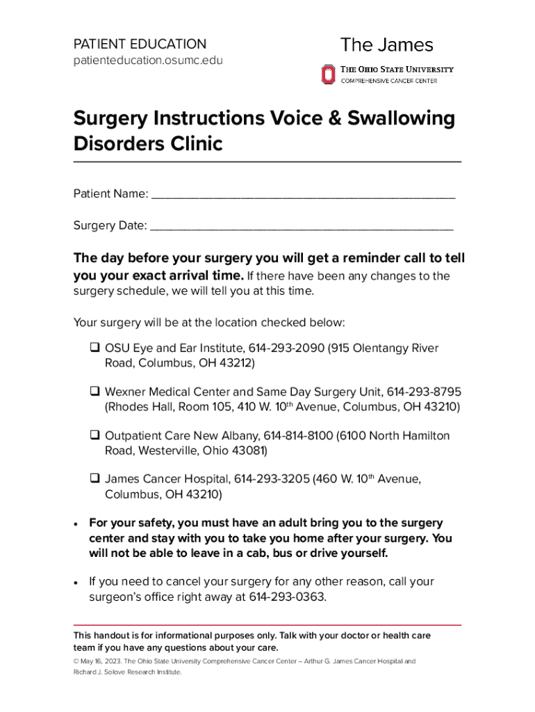 Get the free Surgery Instructions Voice & Swallowing Disorders Clinic