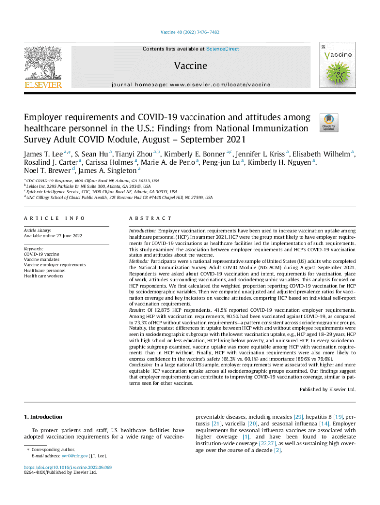 Get the free Employer Requirements and Covid-19 Vaccination Among Healthcare Personnel