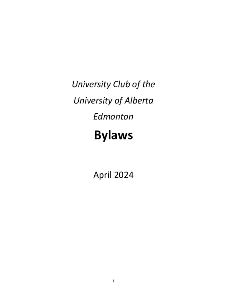 This document outlines the bylaws governing the University Club of the University of Alberta, detailing membership categories, governance structure, meeting procedures, financial management, and provisions regarding amendments and dissolution.