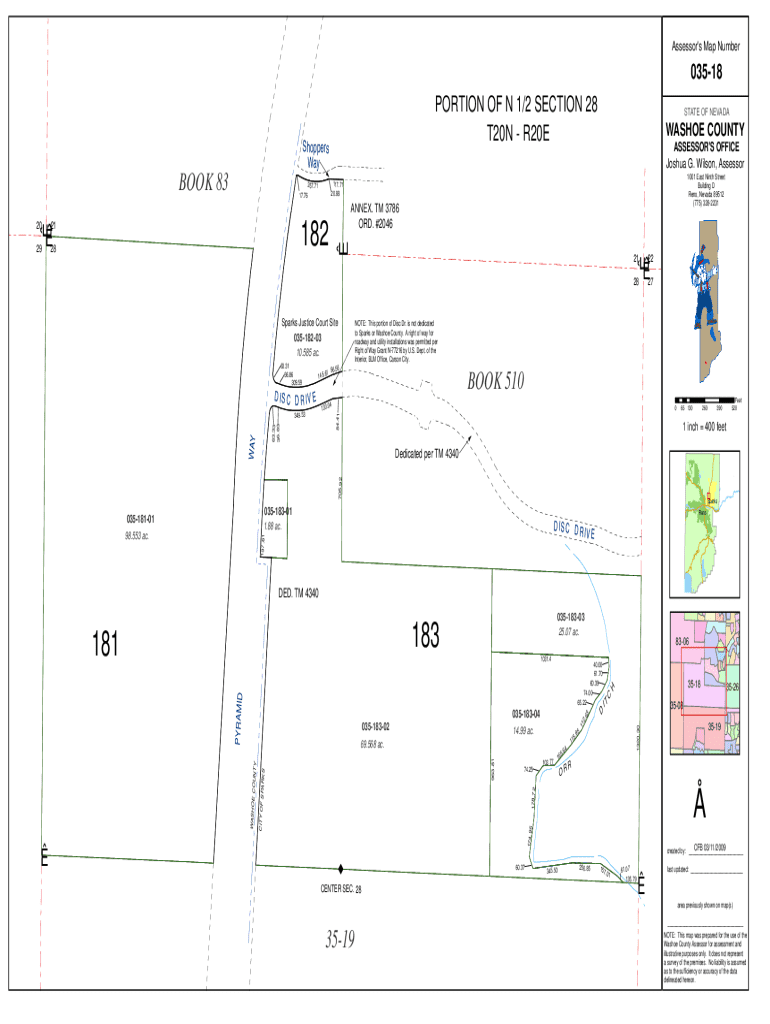 This document provides a detailed assessor\'s map for a portion of land in Washoe County, Nevada, including various sections, land stats, and notes regarding the site\'s roadway and utility rights. It is intended for assessment and illustrative purposes by the Washoe County Assessor\'s Office.