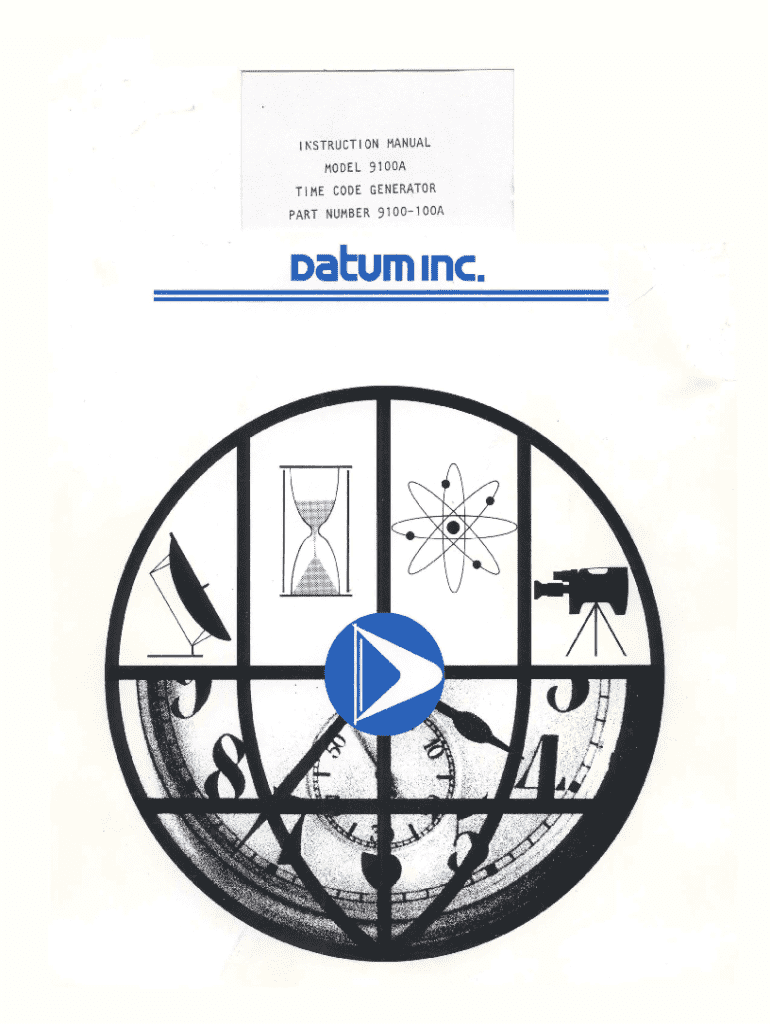IKSTRUCTION MANUAL MODEL 9100A TIME CODE GENERATOR PART NUMBER 9100lOOADatum1nc.IKSTRUCTION MANUAL MODEL 9100A TIME CODE GENERATOR PART NUMBER 9100lOOANOTE: 1.The Model 9100 is shipped for use with