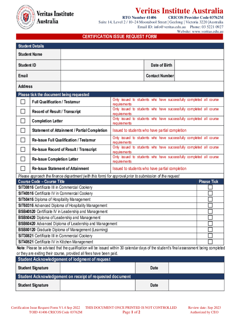Get, Create, Make and Sign veritas institute australiaprofessional courses