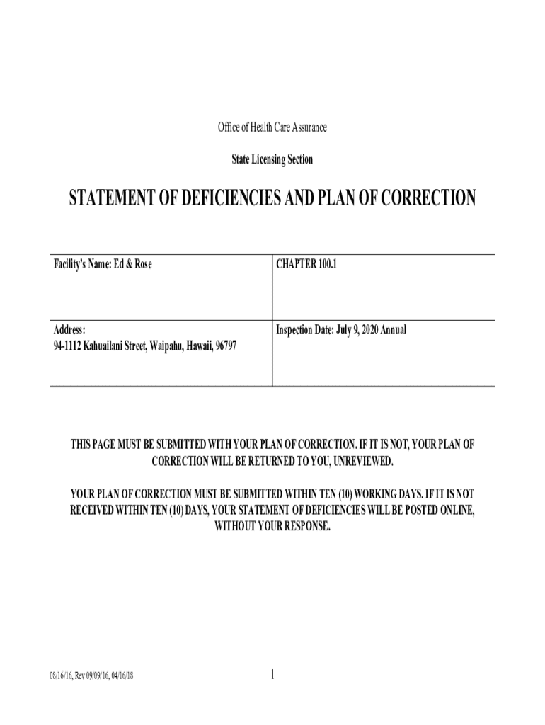 Get the free Statement of Deficiencies and Plan of Correction