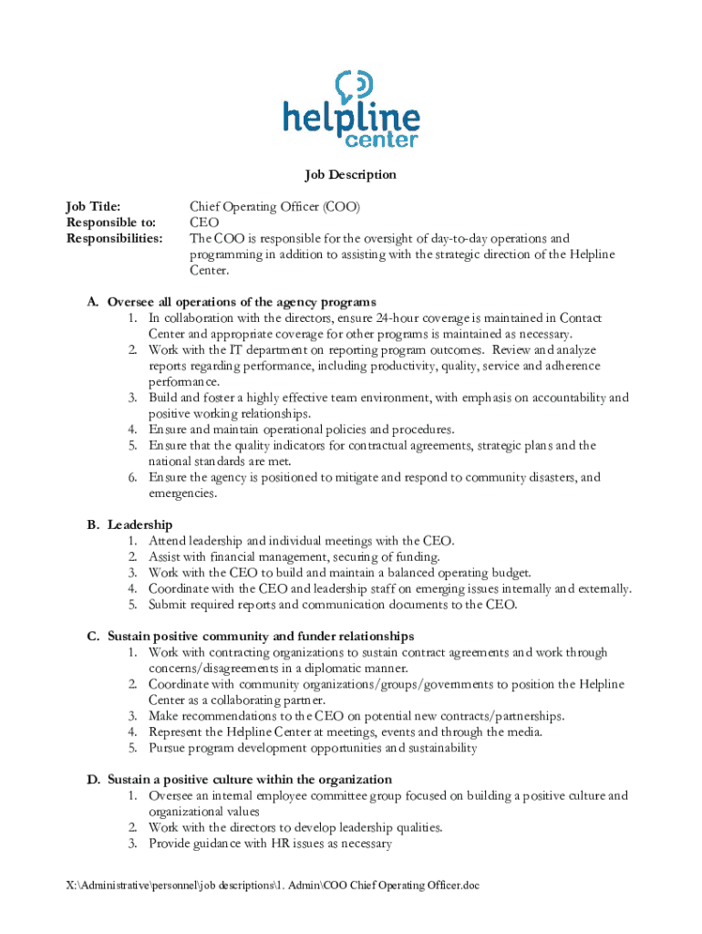 Get the free Navigating the Role of COOs: COO Job Description for ...