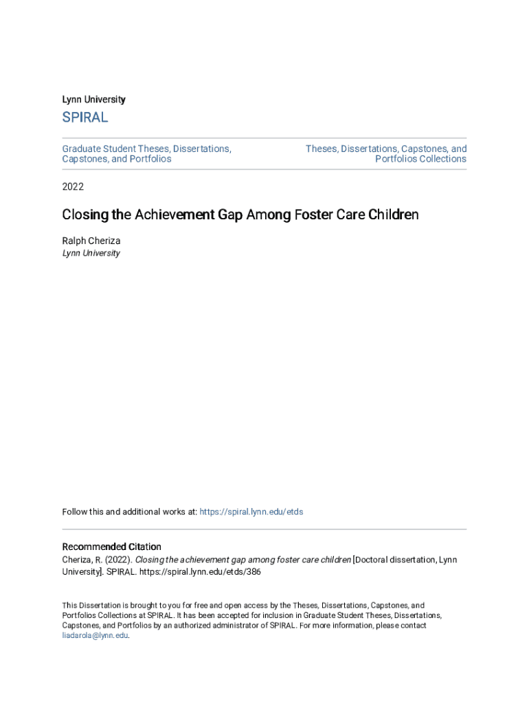 Get the free Closing the Achievement Gap Among Foster Care Children