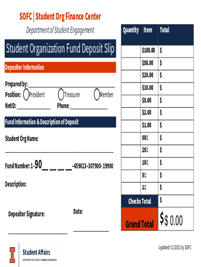 Get the free Student Organization Fund Deposit Slip