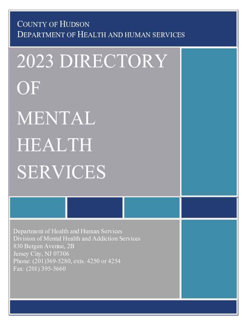 COUNTY OF HUDSON[ T Y P E T H E C O M P A N Y A D D R E S S ] DEPARTMENT OF HEALTH AND HUMAN SERVICES2023 DIRECTORY OF MENTAL HEALTH SERVICES Department of Health and Human Services Division of Mental