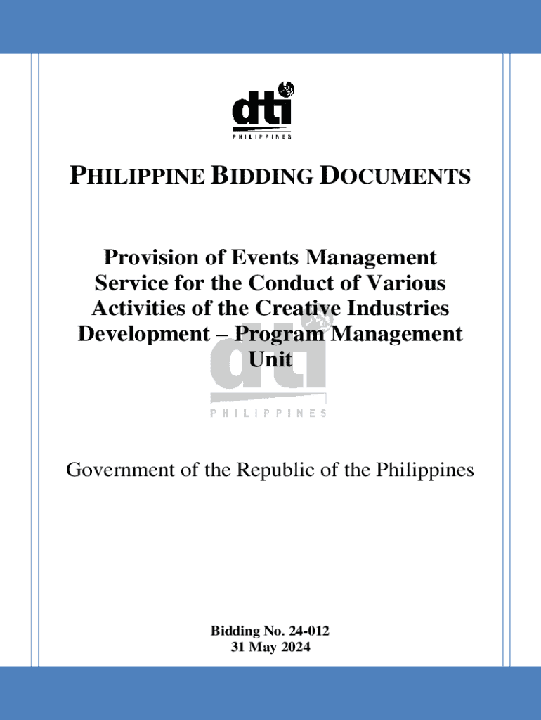 PHILIPPINE BIDDING DOCUMENTS Provision of Events Management Service for the Conduct of Various Activities of the Creative Industries Development Program Management UnitGovernment of the Republic of