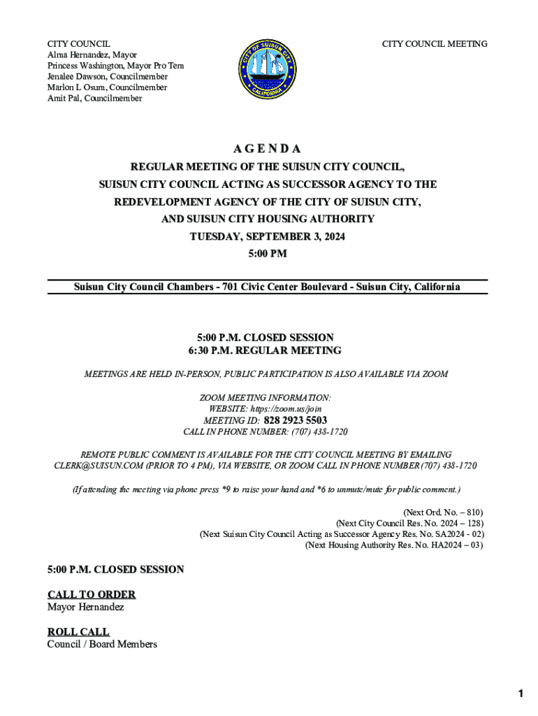 CITY COUNCIL Alma Hernandez, Mayor Princess Washington, Mayor Pro Tem Jenalee Dawson, Councilmember Marlon L Osum, Councilmember Amit Pal, CouncilmemberCITY COUNCIL MEETINGAGENDA REGULAR MEETING OF