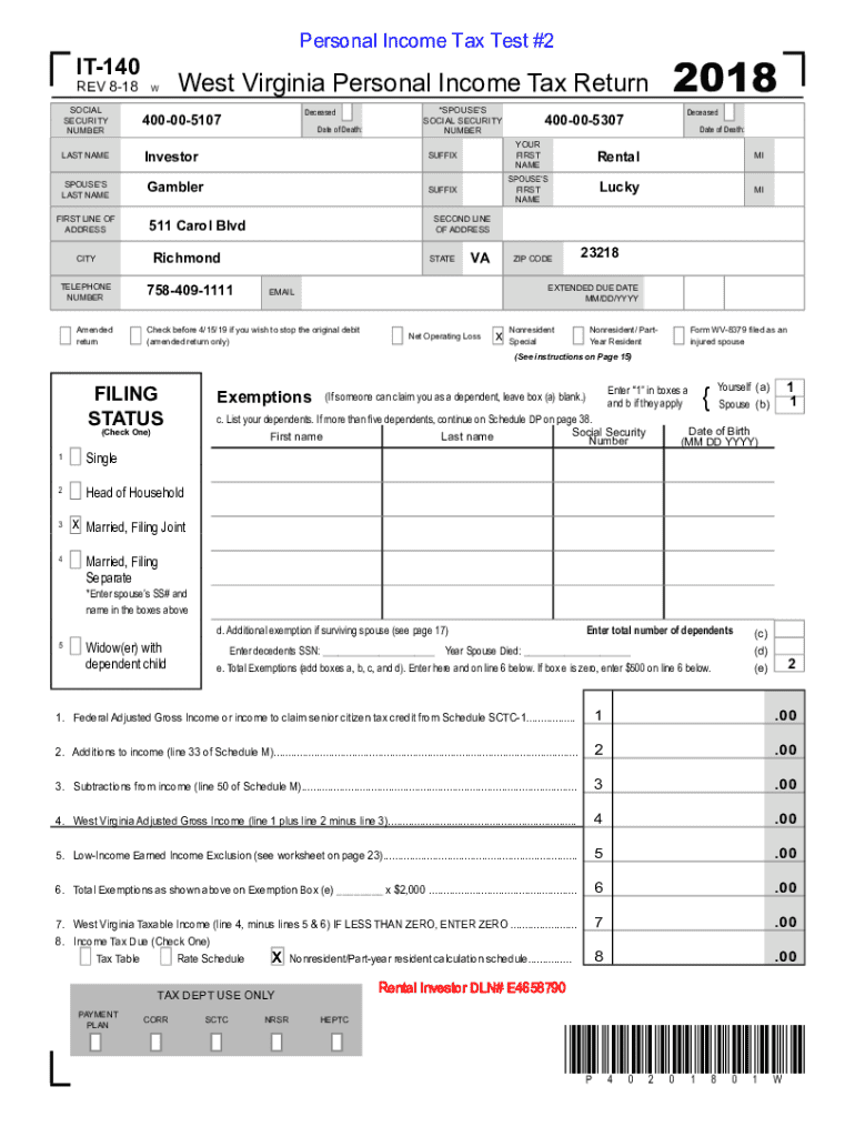 This document is a personal income tax return form for residents and non-residents of West Virginia, detailing income, exemptions, taxes due, and refund information for the tax year 2018. It includes information about filing status, dependents, and various tax credits, as well as specific instructions for completing the form.