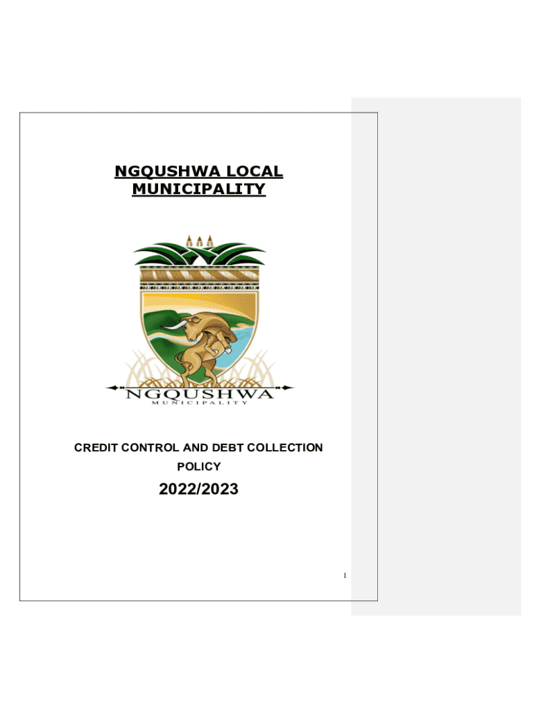 NGQUSHWA LOCAL MUNICIPALITYCREDIT CONTROL AND DEBT COLLECTION POLICY2022/20231Summary Publication Date01 July 2020Review Date19 March 2022Related Legislation/Applicable Section of LegislationDeleted: