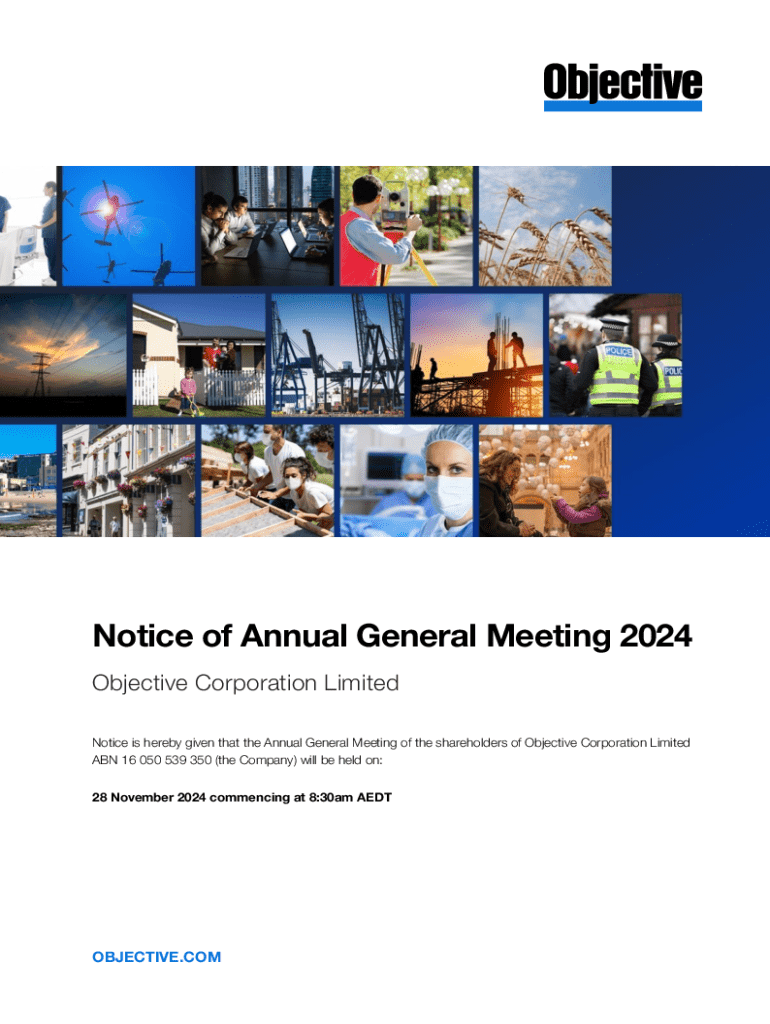 Notice of Annual General Meeting 2024 Objective Corporation Limited Notice is hereby given that the Annual General Meeting of the shareholders of Objective Corporation Limited ABN 16 050 539 350 (the
