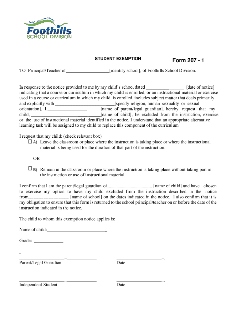 Get the free Student Exemption Form