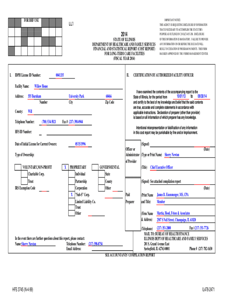 Get the free Financial and Statistical Report for Long-term Care Facilities - hfs illinois