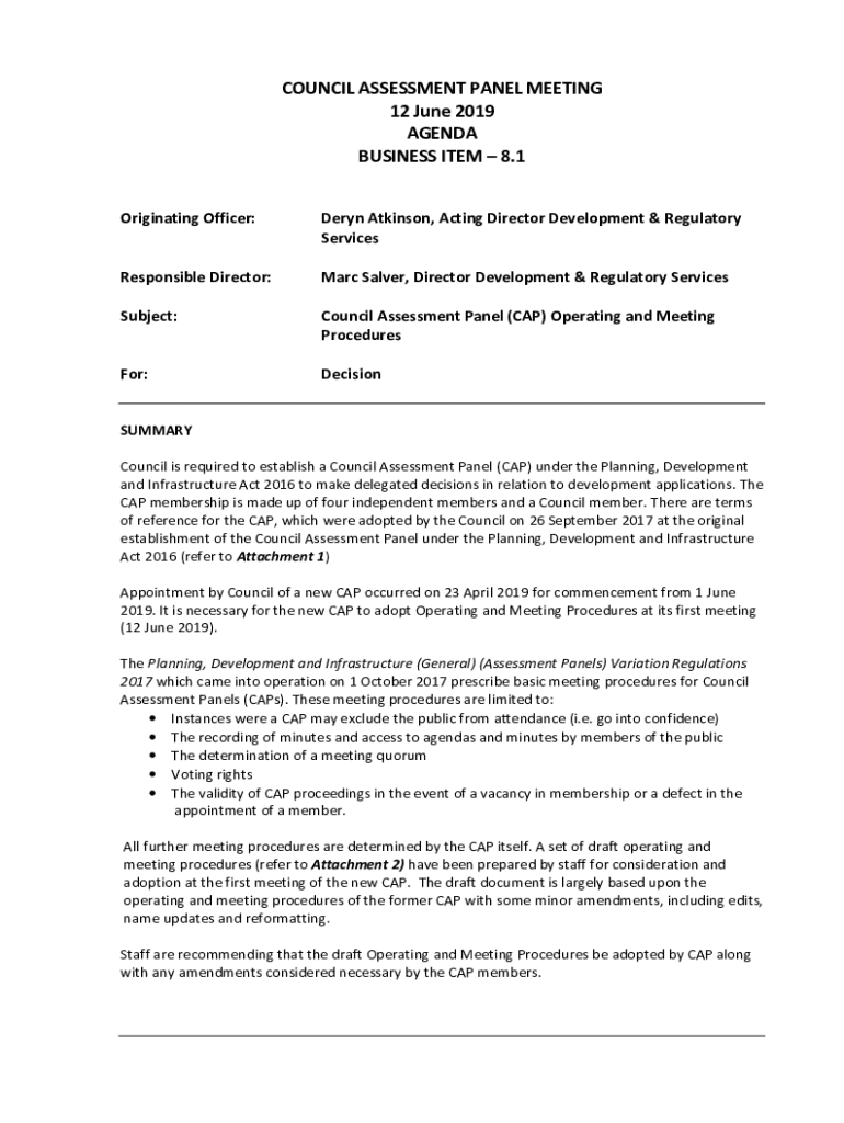 COUNCIL ASSESSMENT PANEL MEETING 12 June 2019 AGENDA BUSINESS ITEM 8.1 Originating Officer:Deryn Atkinson, Acting Director Development & Regulatory ServicesResponsible Director:Marc Salver, Director
