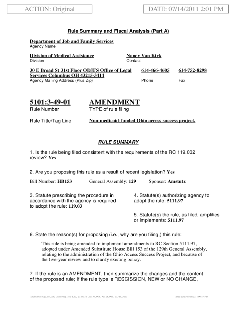 This document outlines the amendments made to the rules governing the non-Medicaid-funded Ohio Access Success Project, including application processes, eligibility requirements, and benefit limitations associated with the program. The changes are designed to clarify existing policies and implement modifications as required by new legislation.