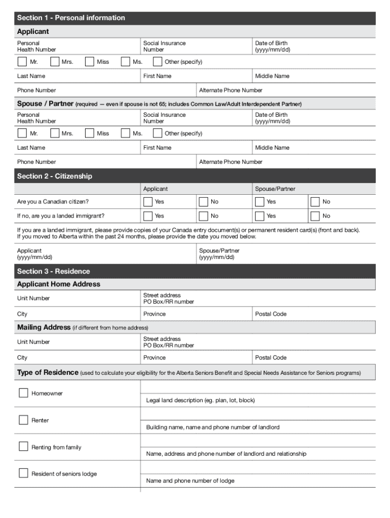 Please print your information in the boxes below Section 1 Personal information Applicant Personal Health Number Mr.Social Insurance Number Mrs.MissMs.Last NameDate of Birth (yyyy/mm/dd)Other (specify)