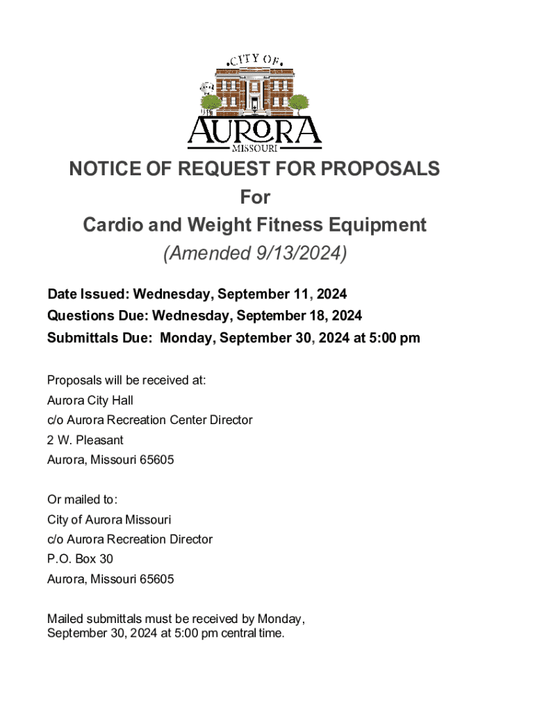 Get the free NOTICE OF REQUEST FOR PROPOSALS For Cardio and Weight ...