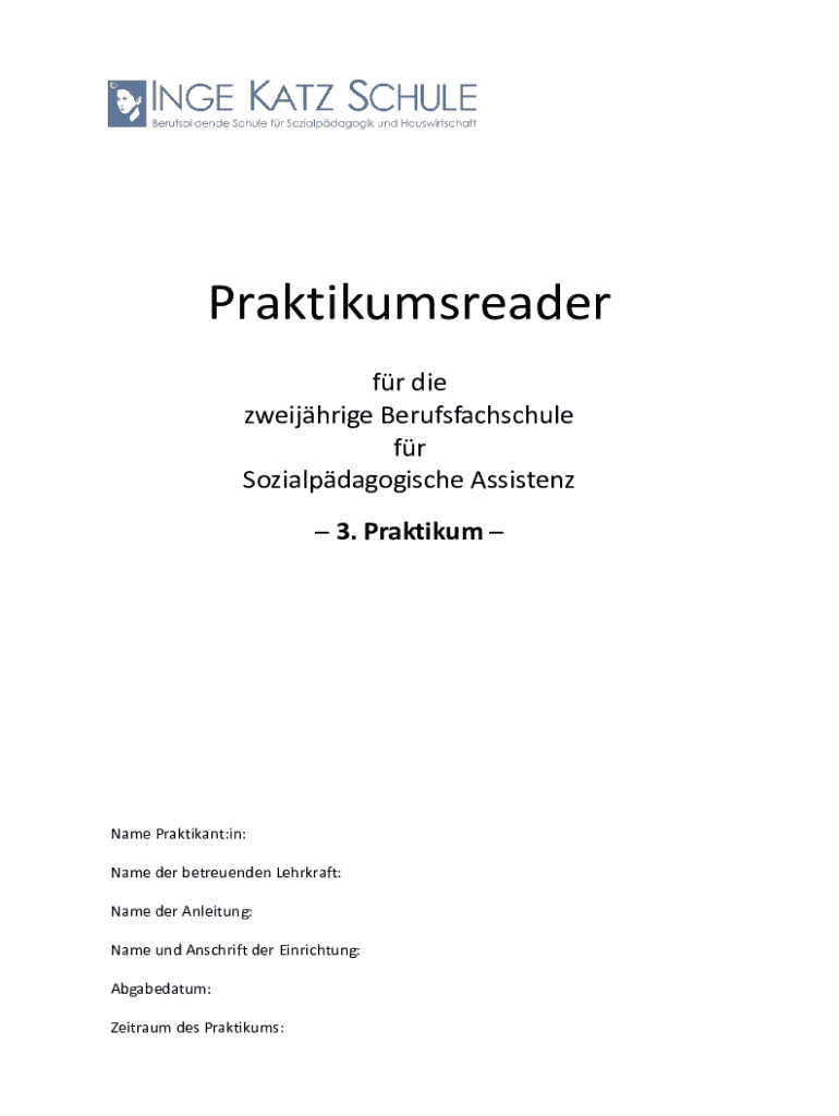 Praktikumsreader fr die zweijhrige Berufsfachschule fr Sozialpdagogische Assistenz 3. Praktikum Name Praktikant:in: Name der betreuenden Lehrkraft: Name der Anleitung: Name und Anschrift der Einrichtung: