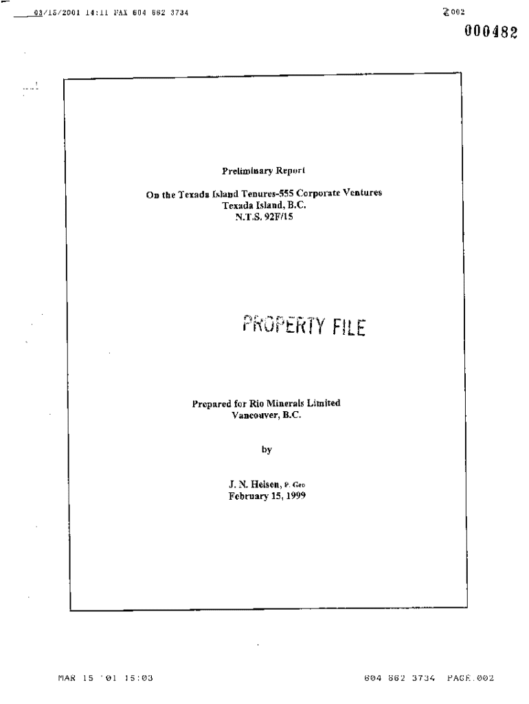 Preliminary Report On Texada is not the form you're looking for?Search for another form here.