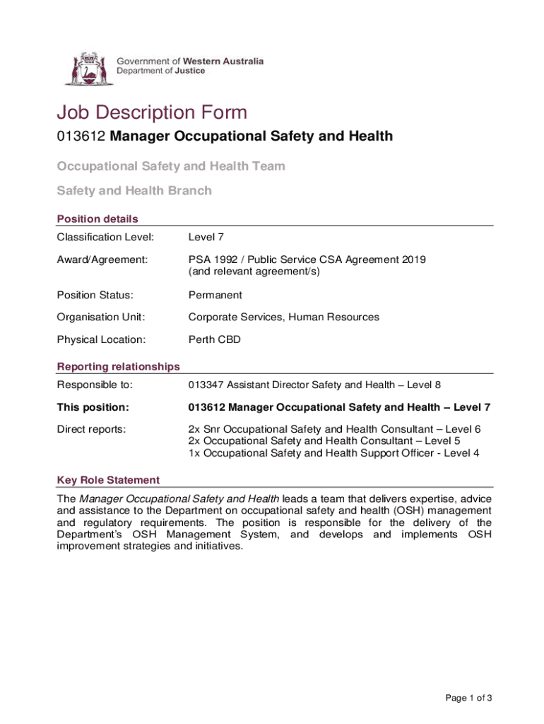Get the free Job Description Form - 013612 Manager Occupational Safety ...