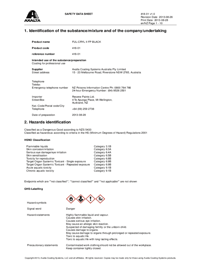 SAFETY DATA SHEET41801 v1.0 Revision Date: 20130826 Print Date: 20130828 en/NZ Page 1 101. Identification of the substance/mixture and of the company/undertaking Product nameFULCRYL II FP BLACKProduct