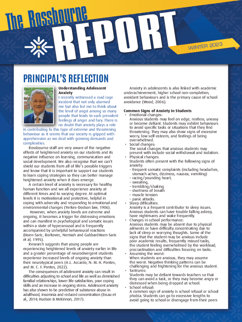 e n r u o b s s The Ro WINTER2023PRINCIPALS REFLECTION Understanding Adolescent Anxiety I recently witnessed a road rage incident that not only alarmed me but also led me to think about the level
