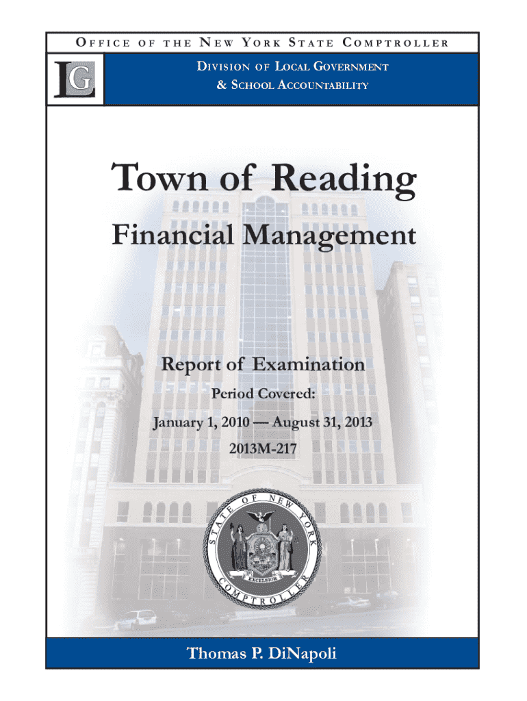 OFFICEOF THENEW YORK STATE COMPTROLLER D IVISION OF LOCAL GOVERNMENT & SCHOOL ACCOUNTABILITYTown of Reading Financial ManagementReport of Examination Period Covered: January 1, 2010 August 31, 2013