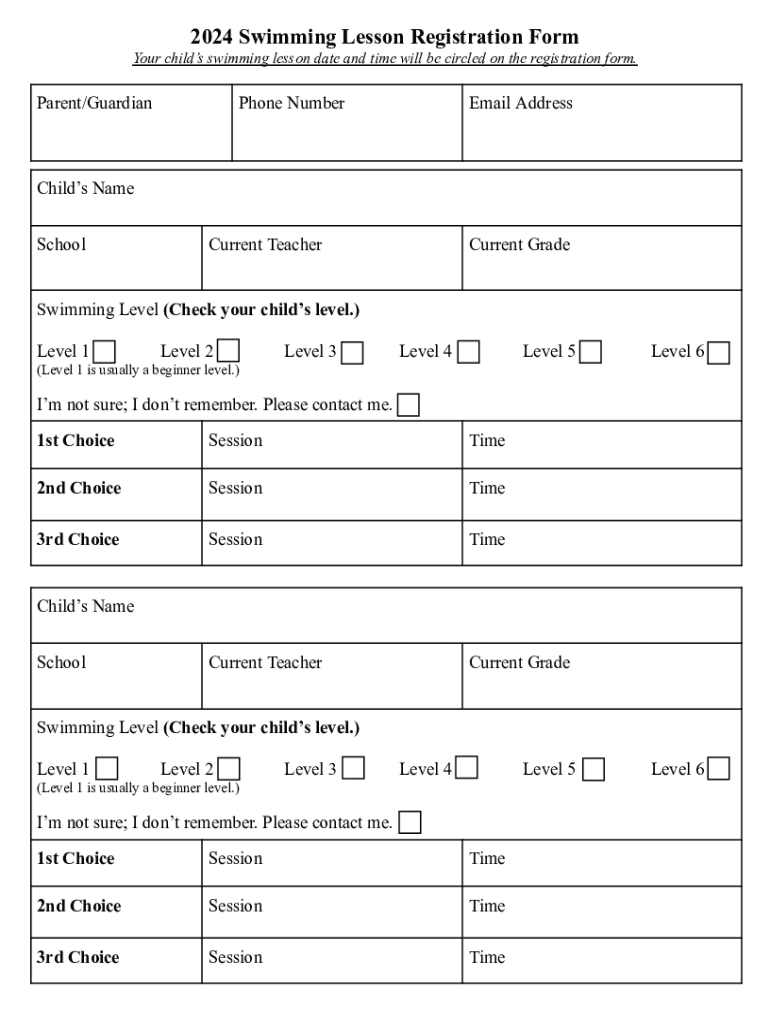 To fill out the 2024 swimming lesson registration, individuals typically need to provide personal information, select desired lesson times, and complete any required consent forms.