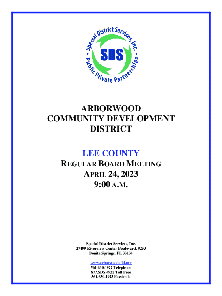 Get the free Arborwood Community Development District Regular Board Meeting