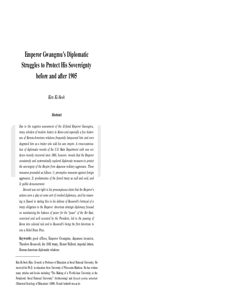 Get the free Emperor Gwangmu's Diplomatic Struggles to Protect His ...