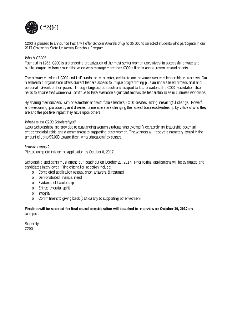 Instructions for the form GSUReachoutC200 Scholar Application(1). ...
