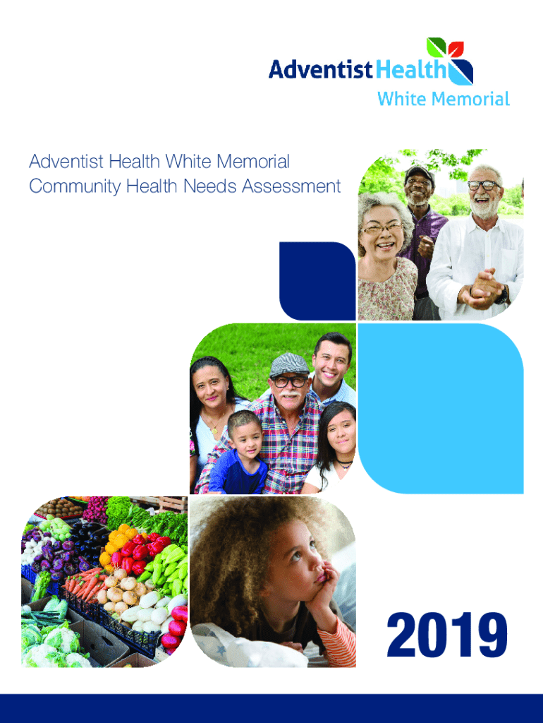 This document is the Community Health Needs Assessment conducted by Adventist Health White Memorial in 2019. It outlines the pressing health needs of the local communities, identifies community assets, and suggests strategies for addressing these needs through collaboration with stakeholders. The assessment specifically focuses on the health issues faced by low-income, minority, and underserved populations in the Boyle Heights and East Los Angeles areas.